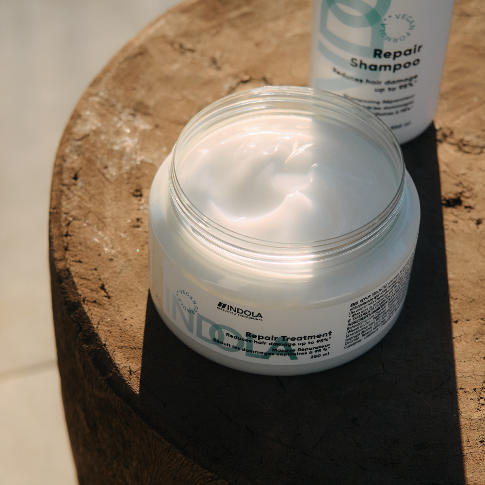 Breng de Indola Treatment Repair aan op handdoekdroog haar en laat enkele minuten inwerken. Spoel het masker vervolgens grondig uit. Voor het optimale resultaat, gebruik in combinatie met de Indola Repair Shampoo en de Indola repair Conditioner.