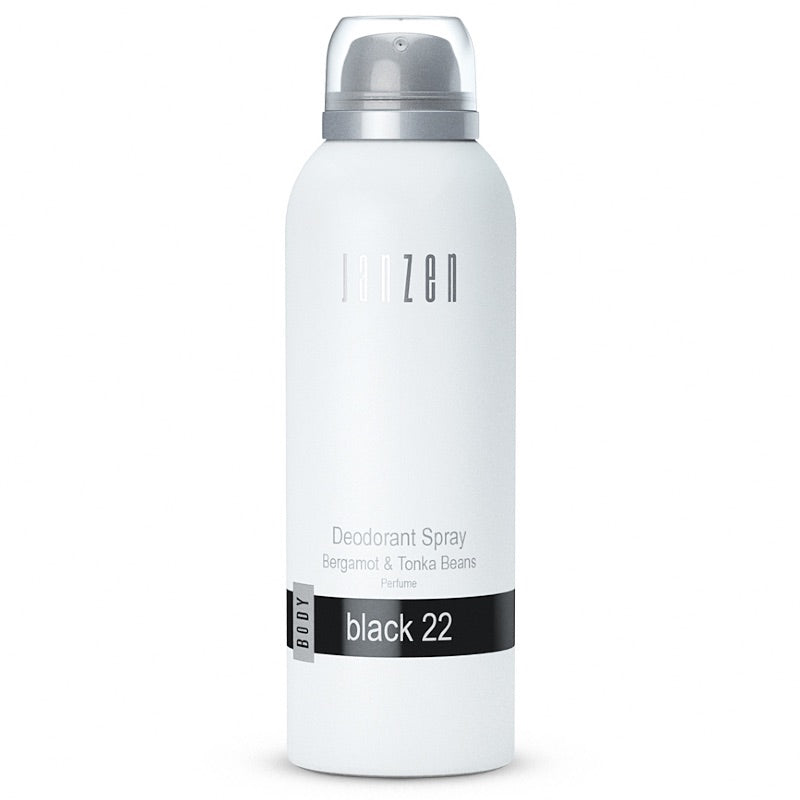 Janzen Deodorant Spray Black 22 zorgt voor een fris-warme geur die gedurende de dag aanblijft.