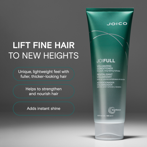 De Joico JoiFull Voluminizing Conditioner maakt je haar volumineus, vol en veerkrachtig. Je haar krijgt meer body en textuur, terwijl het licht en luchtig blijft. Het krijgt een prachtige, natuurlijke glans en voelt gezond en sterk aan. Elke dag heb je een volle, volumineuze coupe, zonder dat het haar zwaar aanvoelt.