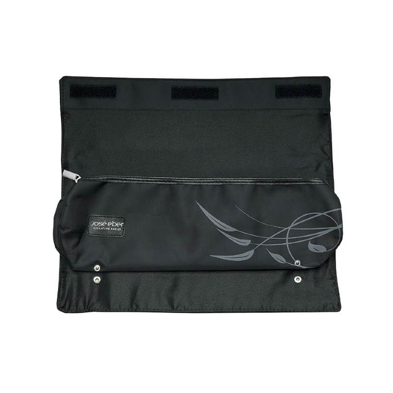 De José Eber Hittemat en Opberghoes met print is een handige hoes om je stylingtools in op te bergen. De hoes kan ook als hittemat gebruikt worden, zo kun je je tools veilig neerleggen tijdens het stylen van je haar. Ook is de hoes handig om je krul- of stijltang mee te nemen op reis. De opberghoes is hittebestendig en is dus volledig veilig in gebruik. De hittemat en opberghoes is zwart met een stijlvolle print.