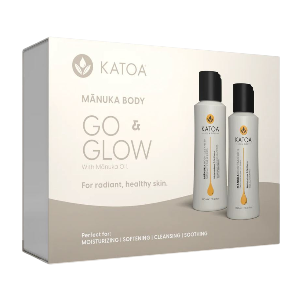Ga stijlvol en verzorgd op reis met de Katoa Mānuka Go & Glow Body Travel Set – jouw luxe selfcare-moment, waar je ook bent. Deze elegante, reisvriendelijke set bevat een travel size Mānuka Body Cleanser en Mānuka Body Emulsion, beide verrijkt met krachtige Mānuka Oil. Bekend om zijn intens voedende, herstellende en antibacteriële eigenschappen, zorgt Mānuka Oil voor een zachte, gehydrateerde en stralende huid – zelfs na lange reisdagen.