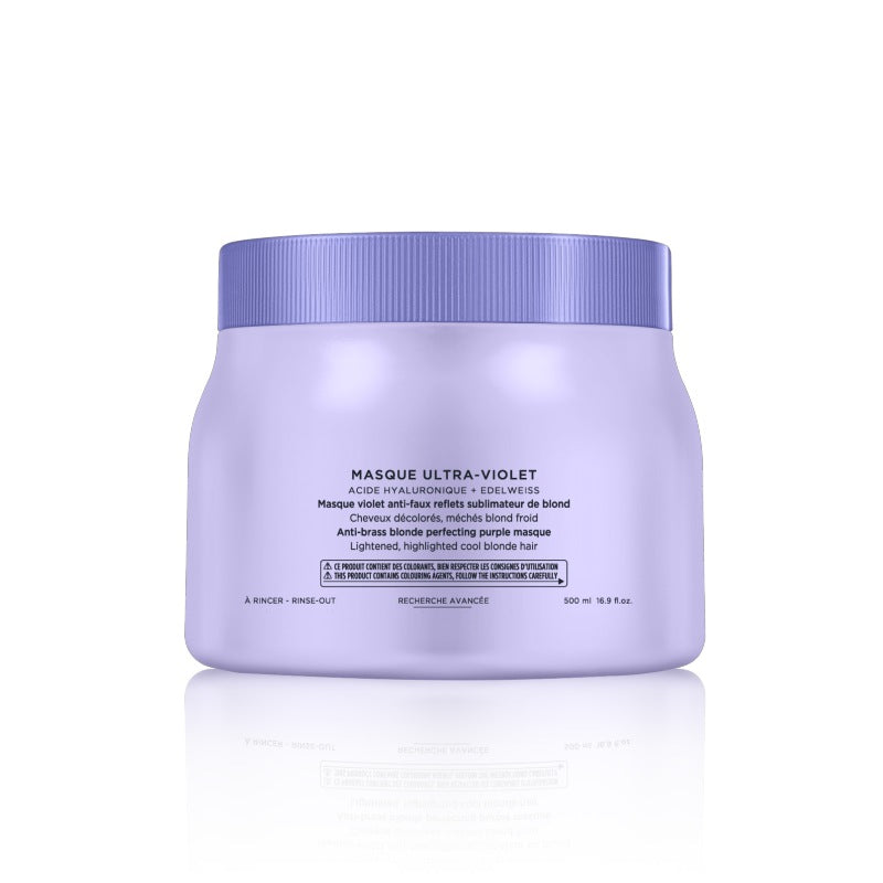• Voor een intense neutralisatie gebruik je Kérastase Blond Absolu Bain Ultra-Violet Shampoo met het Masque Ultra-Violet Haarmasker en het Cicaplasme Hittebeschermer. Zowel de Ultra-Violet Shampoo als het masker neutraliseren het haar, het haarserum zorgt voor extra verzorging en bescherming tegen hitte.