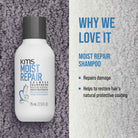 - Breng de MoistRepair Shampoo aan op nat haar, masseer zacht in en spoel grondig uit. Herhaal indien nodig.