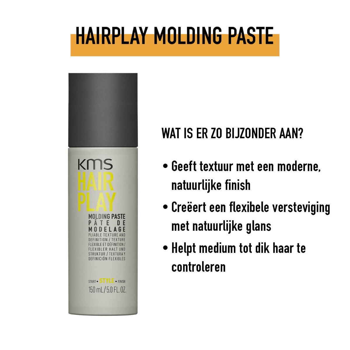 - KMS Hair Hairplay Molding Paste: Ideaal voor het creëren van gestructureerde kapsels met textuur. Wrijf een kleine hoeveelheid tussen je handpalmen en werk het door droog haar om definitie en controle toe te voegen.