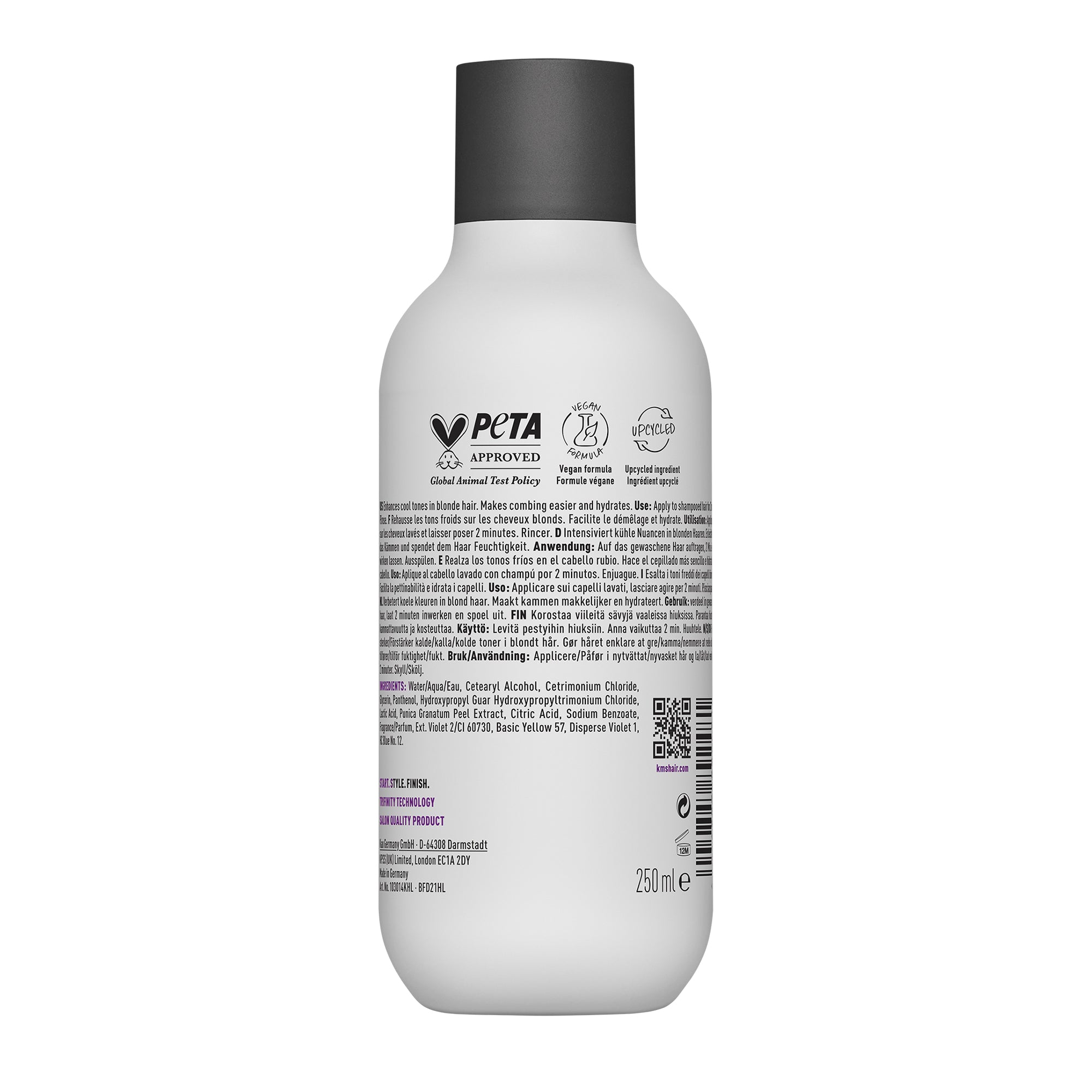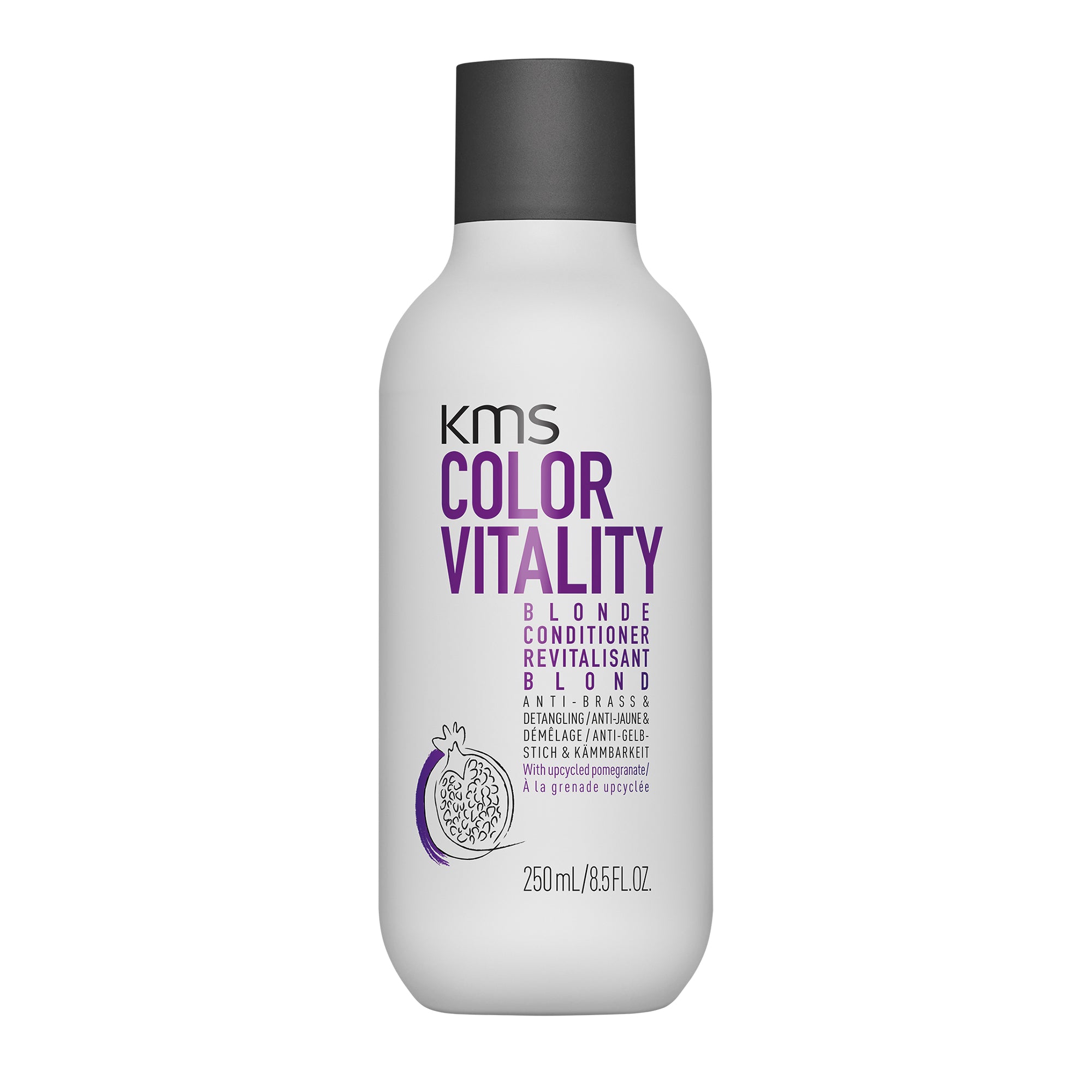 - KMSHair Colorvitality blonde shampoo: is speciaal ontwikkeld voor mensen die blond haar hebben. De shampoo verbetert blondtinten en vermindert vergelen van grijs, geblondeerd, gehighlight, natuurlijk blond, grijs of wit haar al na één keer gebruiken.