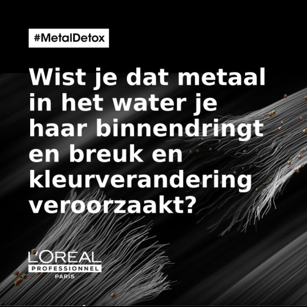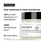 Na gebruik van de L'Oréal Professionnel Serie Expert Metal Detox Haarmasker is het haar gevoed, gehydrateerd, glanzend en beschermd. Het risico op haarbreuk is met 87% verminderd en je hebt een 100% betrouwbaar kleurresultaat.