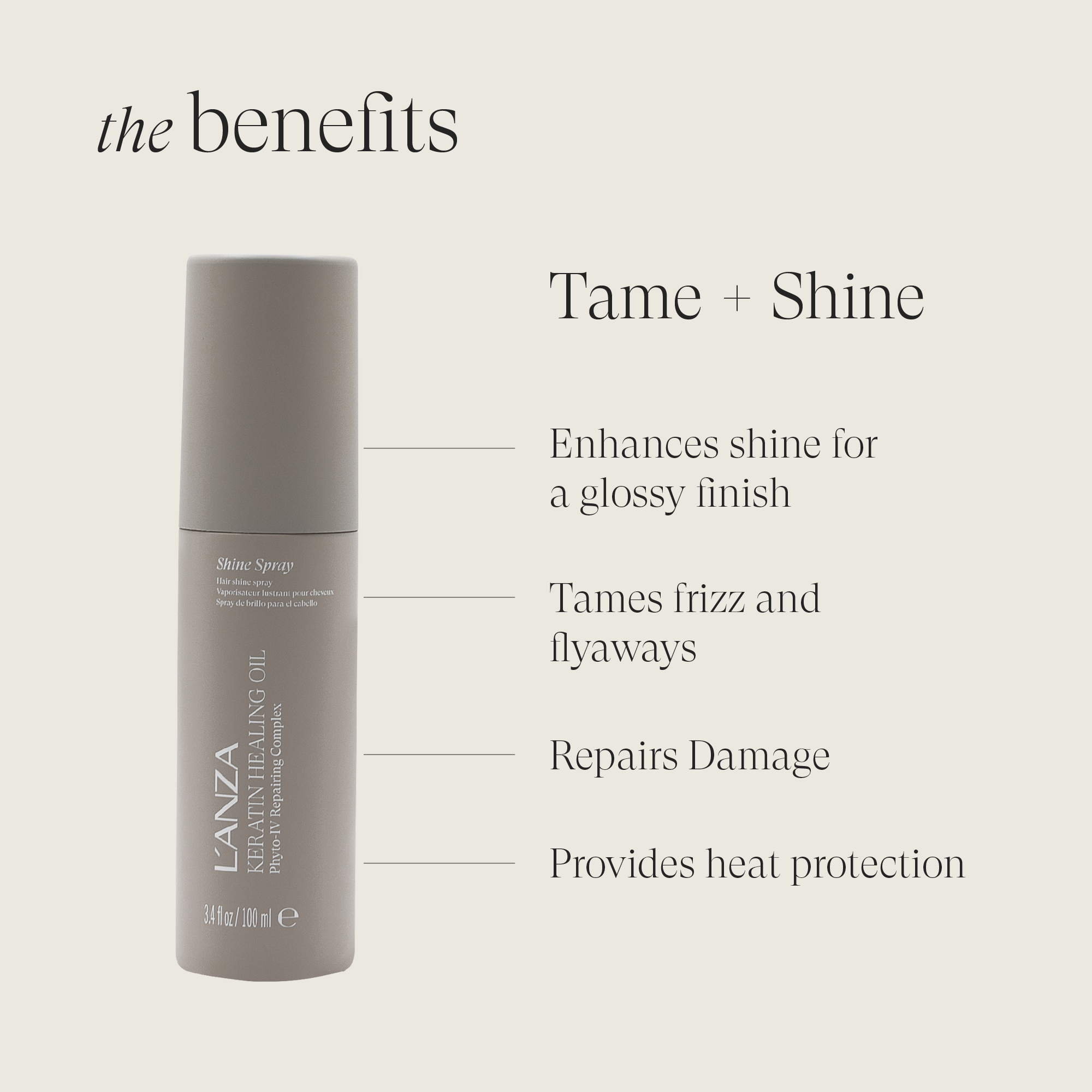 L'ANZA Keratin Healing Oil Lustrous Shine Spray 100ml is een ultrafijne nevelspray die direct pluis en kroes temt en het haar een luxueuze, stralende glans geeft. De lichte formule verzwaren het haar niet en laat geen vettig laagje achter, waardoor het ideaal is voor een gezond ogende, gladde finish. De spray biedt daarnaast extra bescherming tegen hitte, UV-straling en schadelijke invloeden van buitenaf, waardoor het haar er verzorgd en glanzend uitziet.
