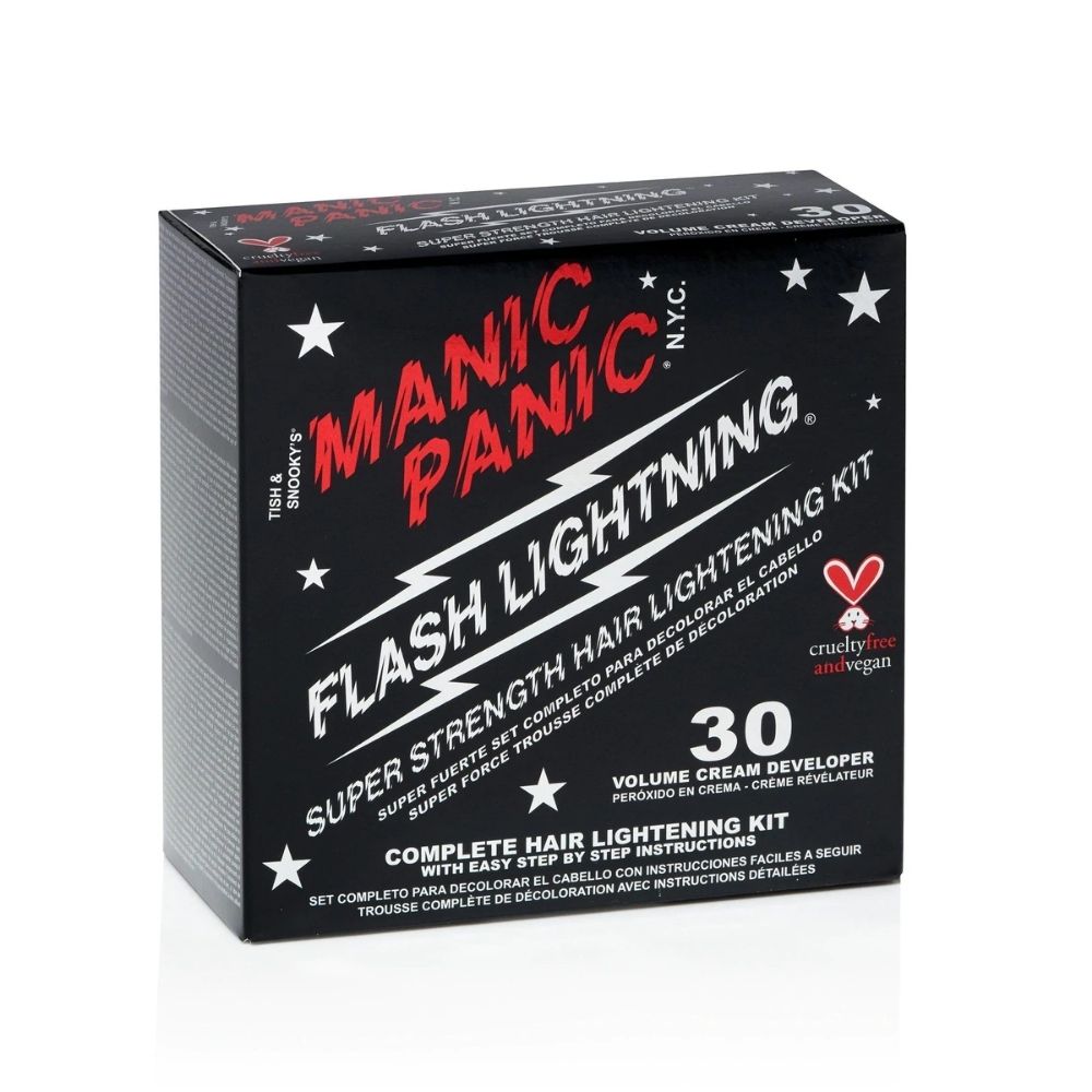 Manic Panic 30Vol Flash Lightning Bleach is een complete kit voor het bleken van het haar voorafgaand aan het gebruik van semi-permanente haarverf.