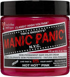 Met de Manic Panic Classic High Voltage Hot Hot Pink creëer je een opvallende neon roze haarkleur met een koele ondertoon. Deze semi-permanente haarverf komt het best tot zijn recht op licht blond haar (kleurtoon 10), maar kan ook gebruikt worden op natuurlijk, niet-geblesseerd haar voor een diepere roze tint.