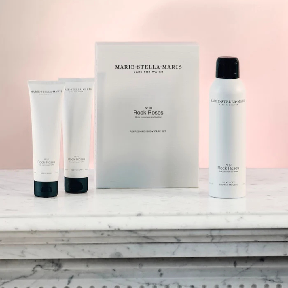 Verwen jezelf of een ander met de Marie-Stella-Maris Refreshing Body Care Set Rock Roses, een luxe body care routine die reinigt, exfolieert en hydrateert. Deze complete giftset combineert een rijke shower mousse, een zachte scrub en een voedende bodylotion voor een zijdezachte, stralende huid. De verleidelijke geur Rock Roses – een mix van roos, kasjmier en leer – neemt je mee van een helder bloemig hart naar warme, rokerige dieptes. Perfect om je ochtend fris te starten of juist heerlijk op te laden na een lange dag.