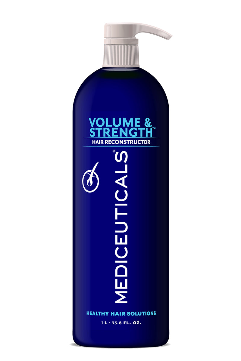 Mediceuticals Volume&Strength Treatment zal het haar repareren vocht in brengen en zichtbaar volume geven.