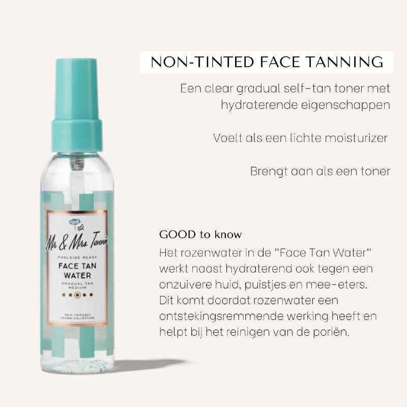 · Mr & Mrs Tannie Poolside Ready 24H Tan Serum: Dit serum biedt een intensieve, gelijkmatige kleur die 24 uur lang aanhoudt, perfect voor een stralende en gebruinde huid.