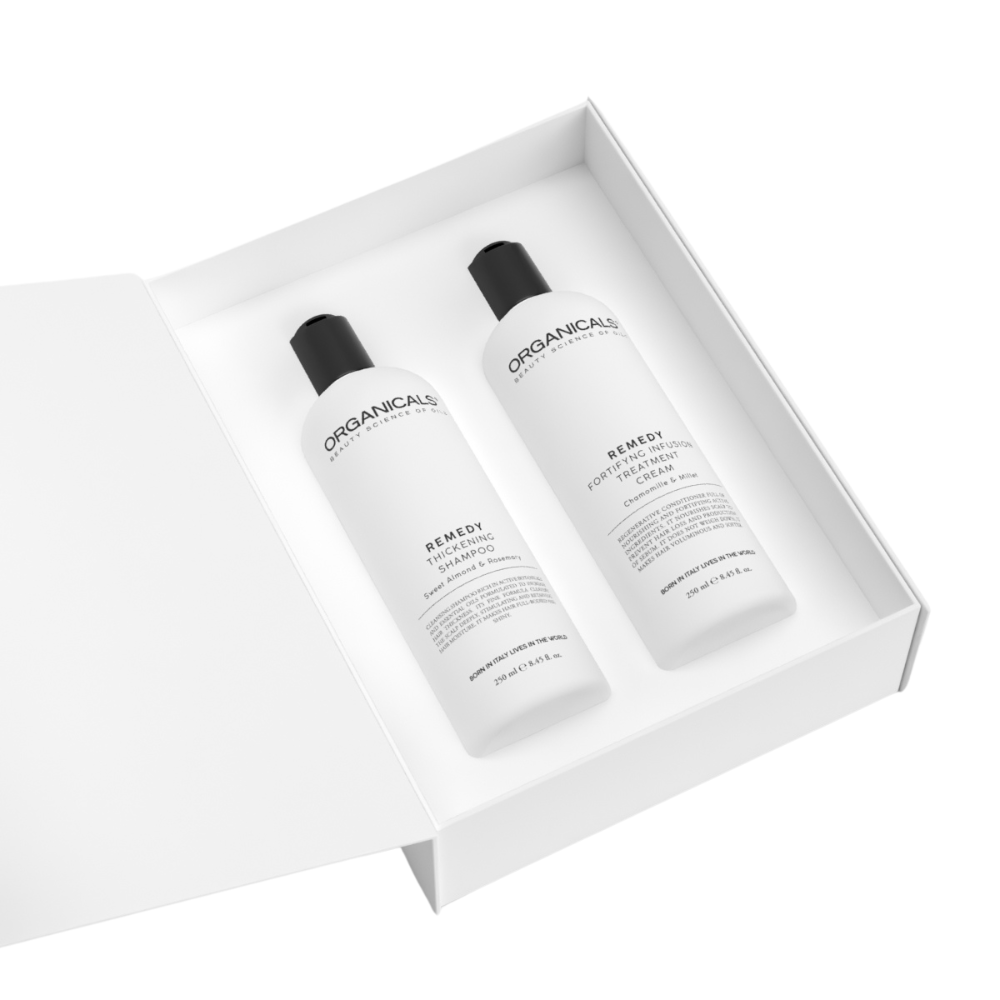 De Organicals Box Thickening Shampoo & Intensive Cream 250ml is de ideale set voor fijn en dunner wordend haar. Deze set bevat de Organicals Thickening Shampoo en de Organicals Fortifying Infusion Treatment Cream. Samen zorgen deze producten voor voller en sterker haar met een gezonde uitstraling. De shampoo geeft het haar meer body en volume, terwijl de treatment cream intensief voedt en de haarvezels versterkt.