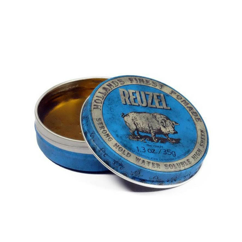 Reuzel Pomade Strong Hold Water Soluble is een pommade die op waterbasis is, wat betekent dat het gemakkelijk uit het haar te wassen is. Sterke hold die het haar in model houdt zoals een zware wax. Geschikt voor elke haardikte of –structuur. Zorgt voor een gepolijste look! Deze pommade droogt niet uit, schilfert niet en zorgt ervoor dat het haar soepelheid blijft behouden. Reuzel Pomade Blauw heeft de subtiele geur van vanille en hout.