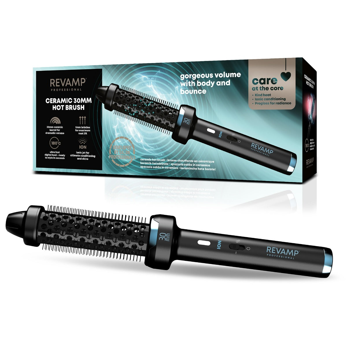 Dankzij de ionische jet geniet je van ultieme verzorging en glans. De 5 mm borstelharen maken optimaal contact met de wortels, waardoor je haar vanaf de wortel extra volume krijgt. De Progloss ™ Super Smooth Oils keramische cilinder is verrijkt met Keratine, Argan- en Kokosolie voor een prachtige glans.