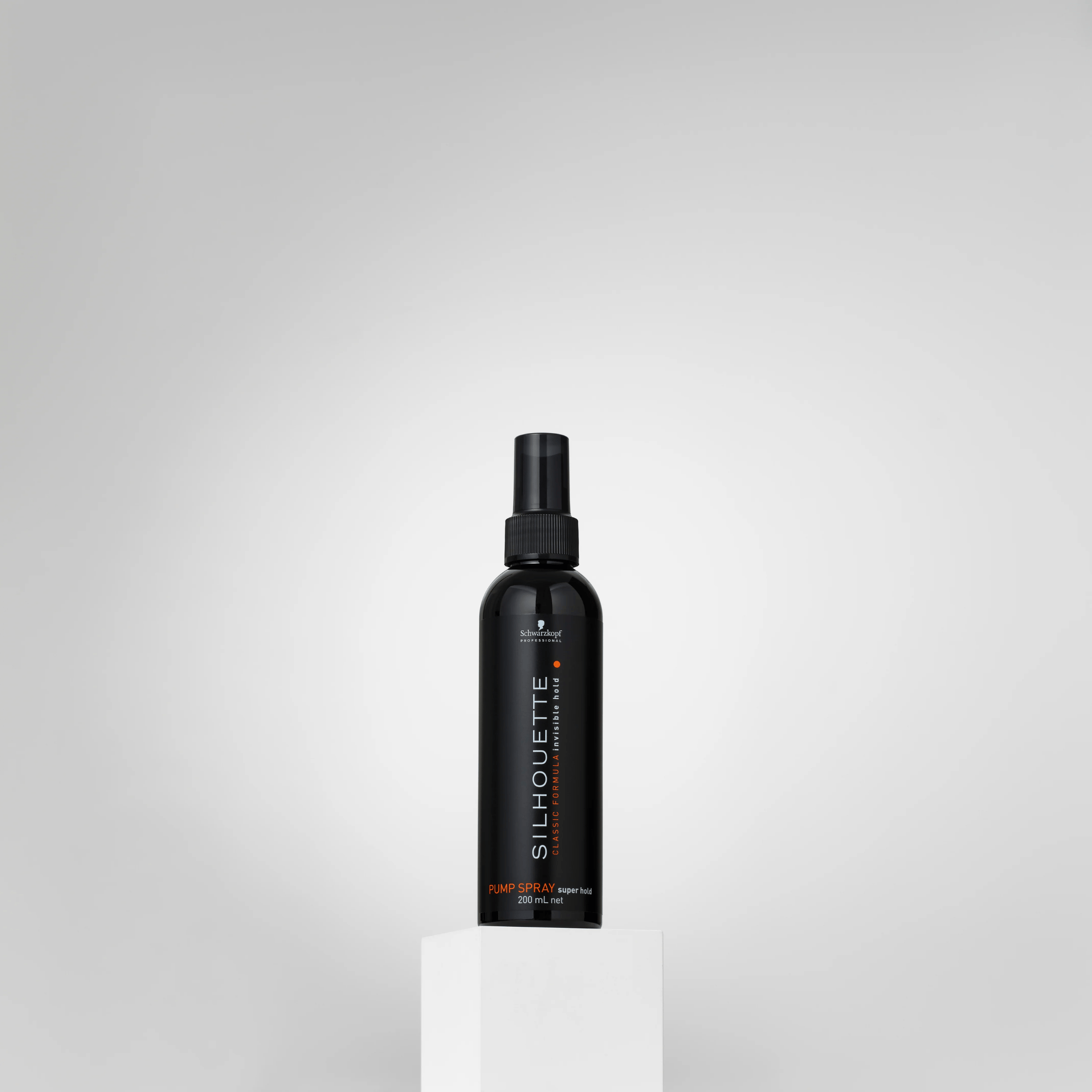 Schwarzkopf Silhouette Super Hold Pumpspray geeft een super strong hold terwijl glans en vitaliteit behouden blijven. De spray vormt een fijn micro laagje rond het haar voor maximaal volume en een langdurig resultaat, zonder dat het haar belast wordt. Schwarzkopf Silhouette Pumpspray Super Hold plakt niet en is gemakkelijk om het gelijkmatig over het haar te verdelen.