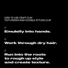 - Werk in op droog haar om te vormen, scheiden en textuur aan te brengen