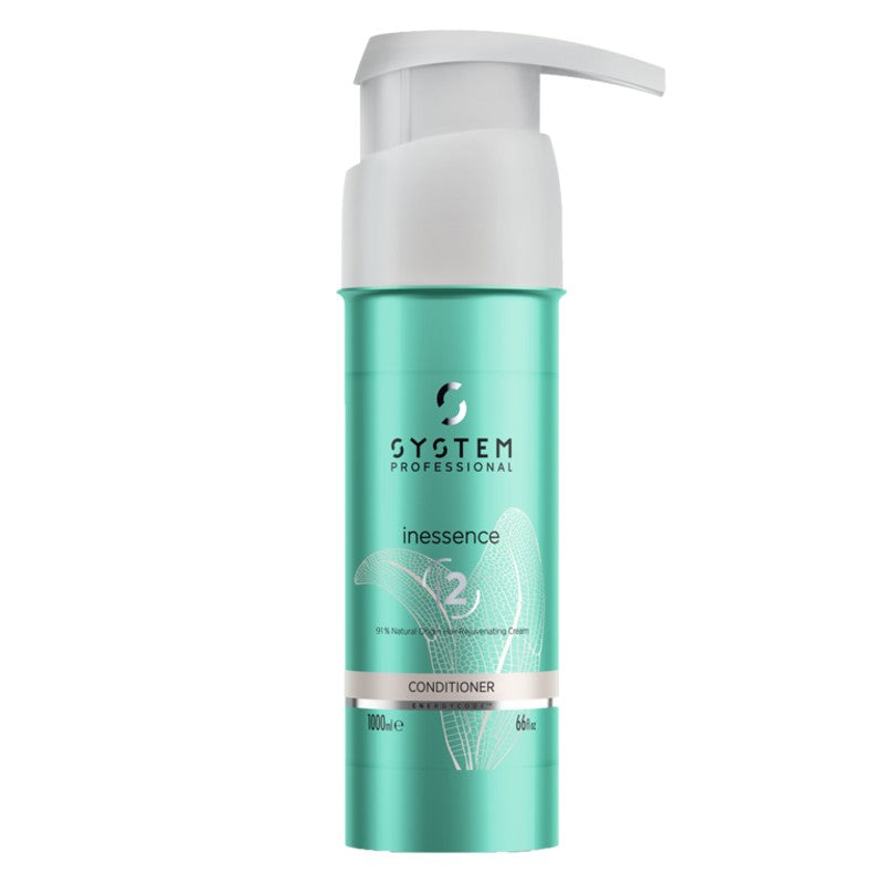 System Professional inessence Conditioner is een revitaliserende conditioner met 92% ingrediënten van natuurlijke oorsprong en Energy Code™ complex en stamcelextract van Açai-bessen die de natuurlijke levendigheid stimuleren. Ook de frizz en frictie van de haarvezel wordt verminderd. Het haar is gladder en gemakkelijk te doorkammen. De formule is vrij van sulfaten.
