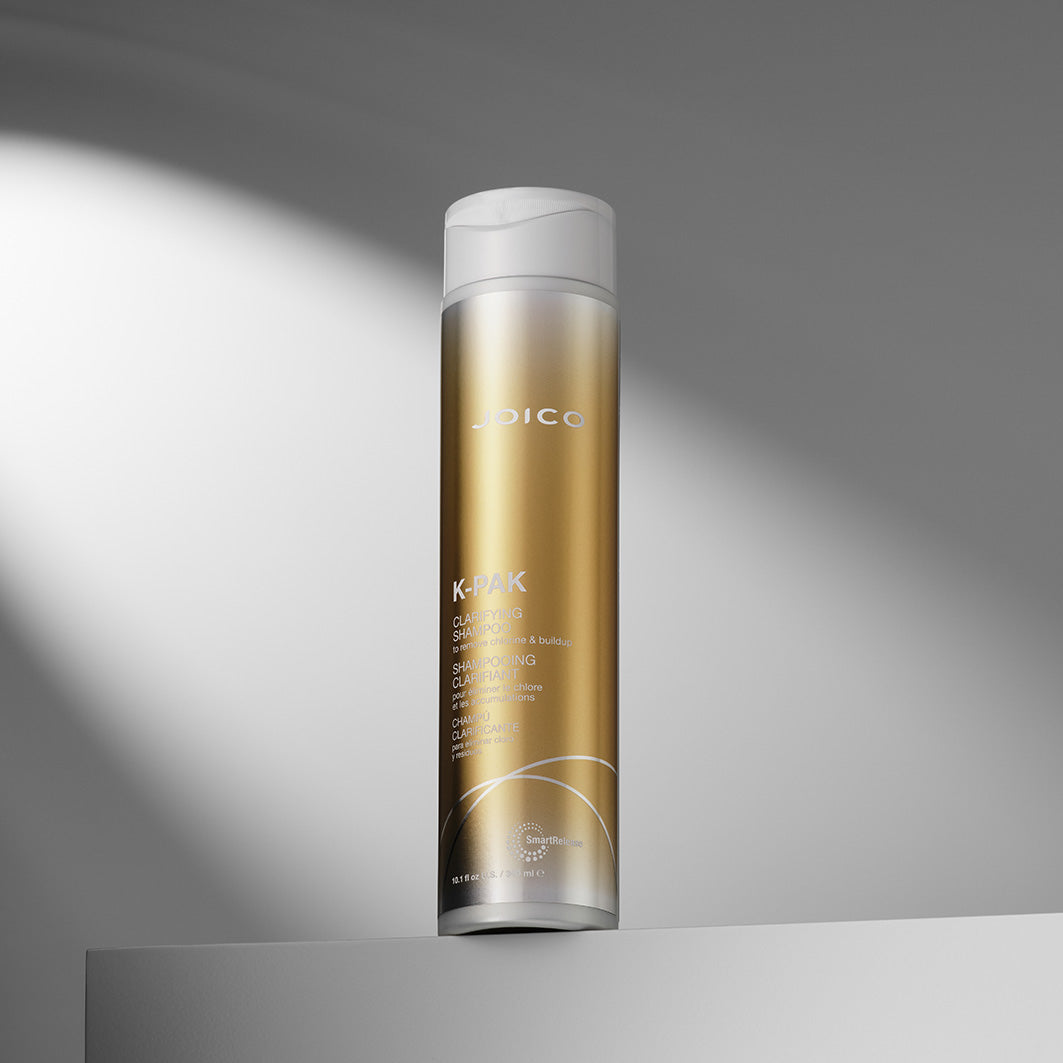 De Joico K-Pak Clarifying Shampoo is een diep reinigende shampoo en verwijdert moeiteloos alle onzuiverheden, stylingresten en overtollige oliën uit je haar zonder het te beschadigen. Zelfs de sporen van chloor, hard water en mineralen die de haarkleur kunnen aantasten worden verwijderd. Verrijkt met krachtige ingrediënten zoals keratine en natuurlijke extracten zorgt deze shampoo voor een grondige reiniging terwijl het je haar verzorgt en versterkt.