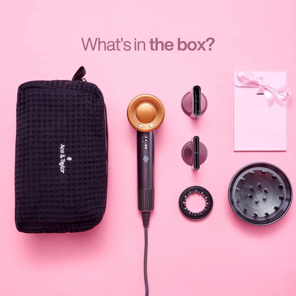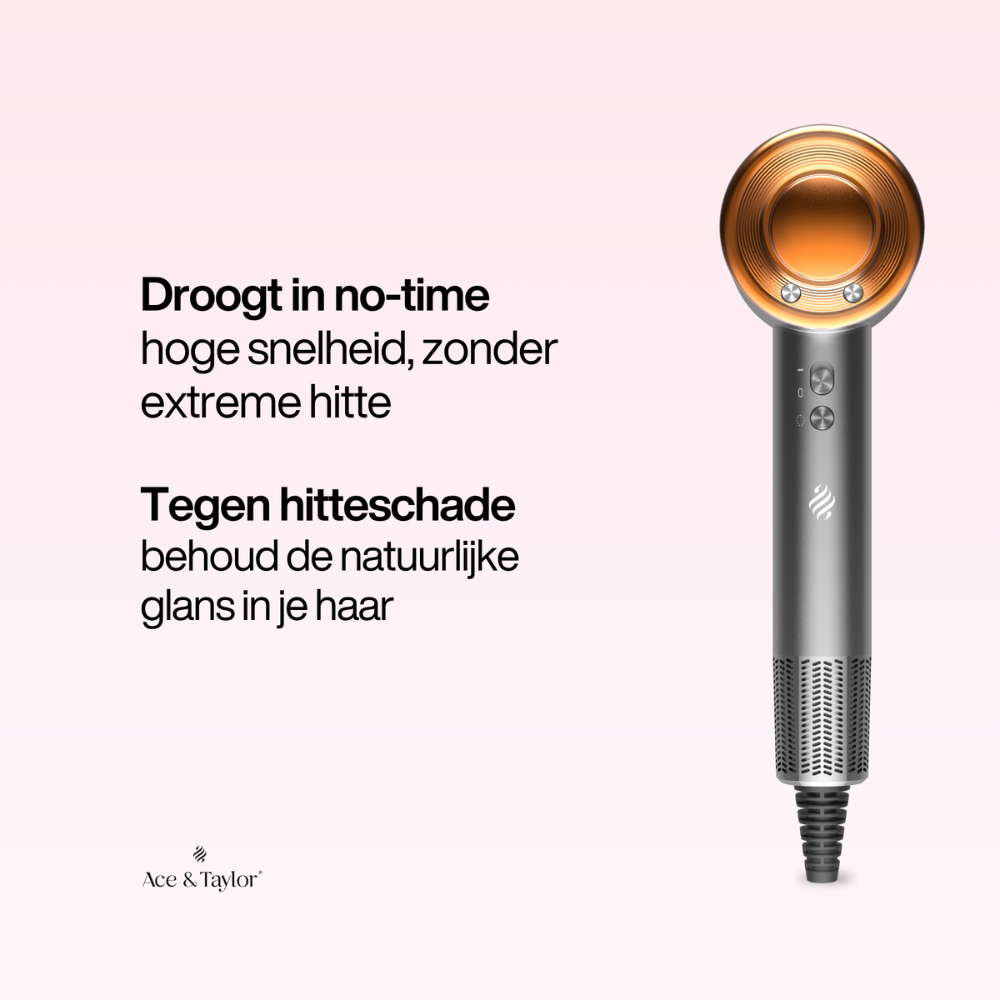 De Ace & Taylor Föhn PrecisionAir Goud is ontworpen voor wie elke dag een salonwaardig resultaat wil. Dankzij de krachtige high-speed BLDC motor van 1400W droogt je haar tot wel 5x sneller, terwijl ionentechnologie zorgt voor zichtbaar meer glans en minder pluis. Met de magnetische opzetstukken, intelligente temperatuurcontrole en een ultralicht design heb je volledige controle over elke styling, ongeacht je haartype.