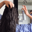 - Spray op schoon, licht vochtig haar van de aanzet tot de punten.
