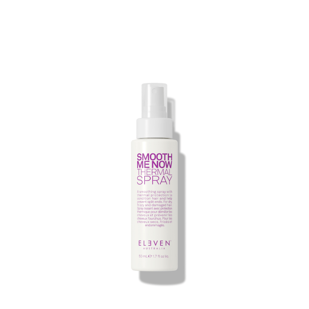 De ELEVEN Australia Smooth Me Now Thermal Spray is een gladmakende spray die het haar beschermt tegen de hitte van stylingtools tot 220°C. De spray helpt gespleten haarpunten te voorkomen, verkort de droogtijd en maakt het haar glanzend en glad. Het controleert pluizig haar en zorgt voor een perfect gestylede look, of je nu föhnt, stijlt of krult.