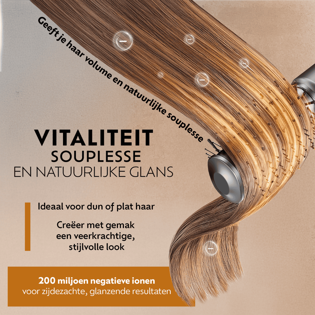 De krachtige high-speed motor in combinatie met ionische technologie produceert tot wel 200 miljoen negatieve ionen. Deze helpen statische elektriciteit en pluis te verminderen, sluiten de haarschubben en zorgen voor een natuurlijke glans. Je haar voelt hierdoor zachter, soepeler en gezonder aan terwijl het langer in model blijft.