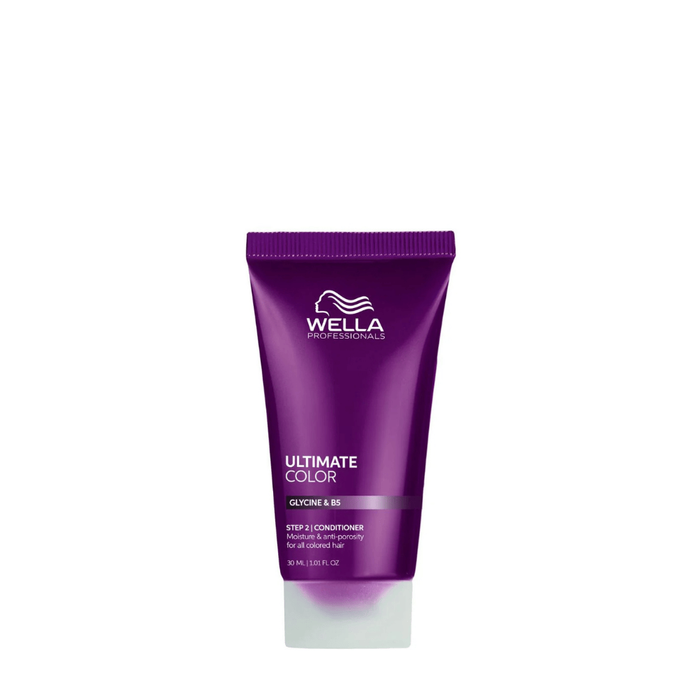 Wella Professionals Ultimate Color Conditioner is een hydraterende conditioner voor gekleurd haar die helpt de haarstructuur te verbeteren en pigmenten in te sluiten. De formule verzacht de haarschubben voor een zijdezacht gevoel en vermindert haarbreuk tot wel 86%, terwijl het haar wordt beschermd tegen vrije radicalen en vocht vastgehouden wordt. Glycine, een metaalreiniger en Pro-Vitamine B5 werken samen om de kleur te behouden en de haarvezel te versterken.