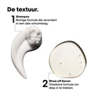 - Breng vervolgens het rinse-off serum aan op handdoekdroog haar, laat even inwerken en spoel zorgvuldig uit.