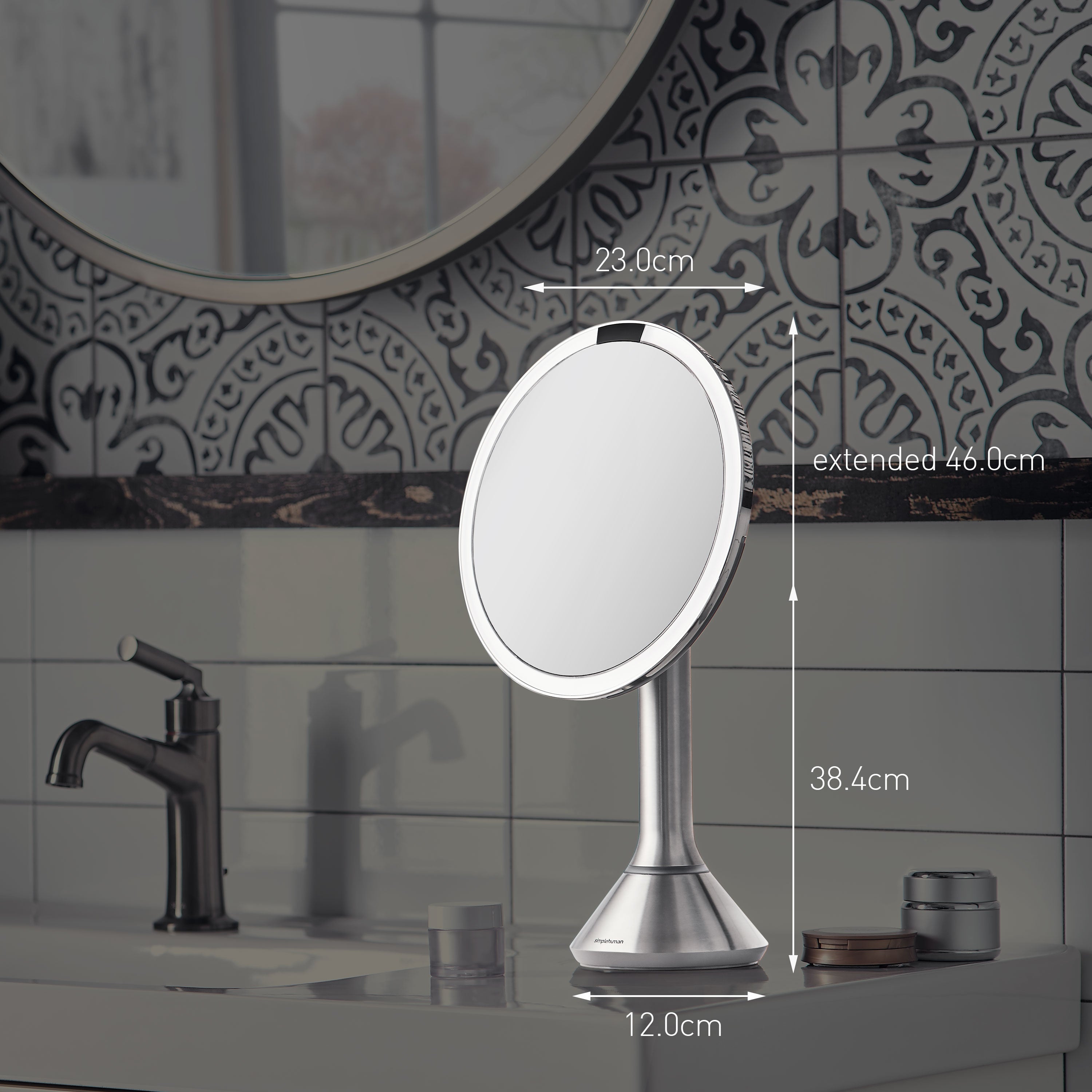 Met de Simple Human Ronze spiegel met sensor zie jij jouw gezicht in het allerbeste licht! Deze luxe spiegel met een diameter van 20 cm heeft een ingebouwde sensor waardoor het licht automatisch aan gaat zodra je dichtbij komt. Dankzij de traploze aanpassing met een eenvoudige handbeweging kan de lichtsterkte ingesteld worden tussen 100 en 800 lux, zodat je altijd de perfecte verlichting hebt.