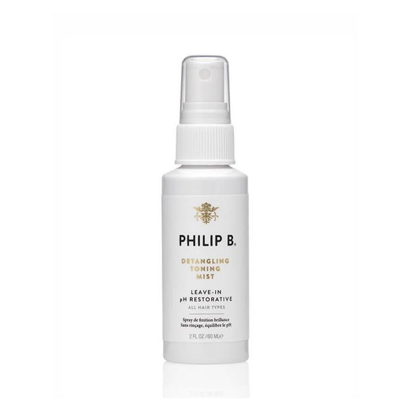 Phillip B pH Restorative Detangling Toning Mist is een lichtgewicht haarmist die het haar ontklit en zorgt voor een pluisvrij resultaat. De leave-in toner neutraliseert de pH waarde van het haar, waardoor het een glanzende en gladde look krijgt. Een mix van essentiële oliën voorkomt en ontwart pluizend en statisch haar. Door de formule zorgt de mist ervoor dat het haar niet zal gaan pluizen. Deze mist is geschikt voor ieder haartype en is vrij van parabenen.