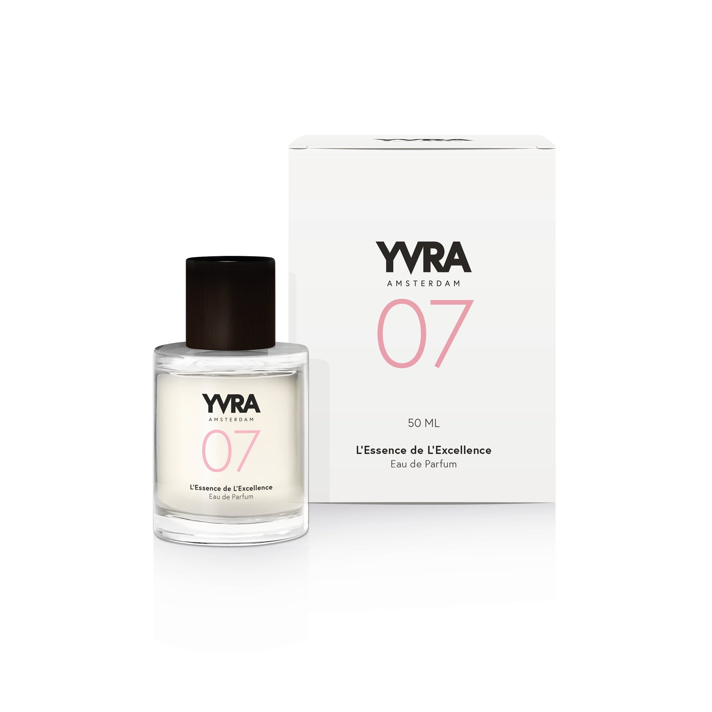 YVRA 07 – L’Essence of L'Excellence is een romantische en verleidelijke geur die het gevoel van perfectie en verfijning vangt in een bloemige, fruitige en poederige geur. Deze bloemig-fruitige geur is zowel verleidelijk als elegant, ontworpen om te verleiden en te betoveren – een geur die je niet snel vergeet. De geur opent met een verfijnde explosie van florale en fruitige noten die subtiel overgaan in een zacht, poederachtig hart. De geur blijft hangen op de huid met een verleidelijke zachtheid – warm, sensueel en intiem.