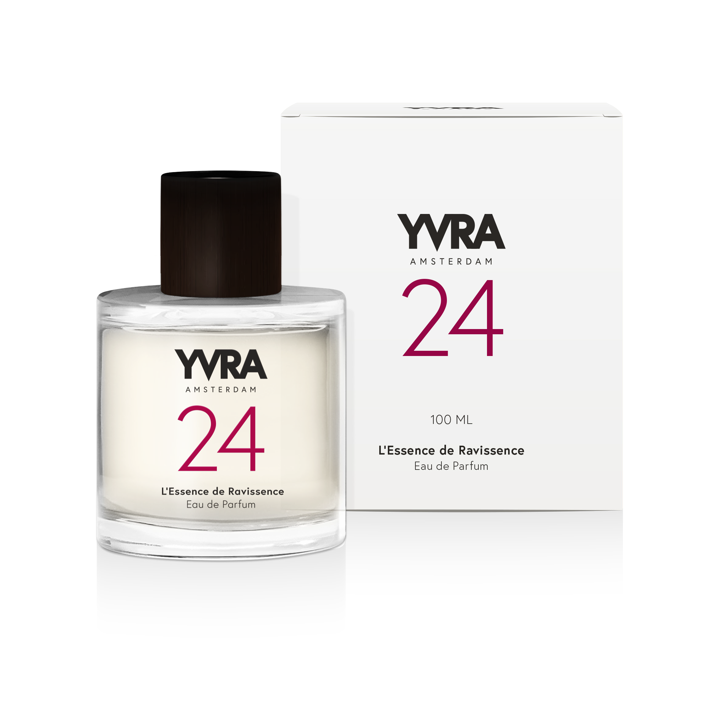 YVRA 24 – L’Essence de Ravissence is een geur die symboliseert een frisse stap richting een jonger, moderner en toegankelijker parfumuniversum. Deze creatie vangt de geest van onze tijd, met een spannende samenstelling die warmte, avontuur en verfijning combineert. De geur opent met een prikkelende combinatie van roze peper, zwarte bes en saffraan, die onmiddellijk een verleidelijk en onverwacht karakter neerzet. In het hart ontvouwt zich een uniek akkoord van papyrus en kostbare iriswortel, wat diepte en elegantie toevoegt. De basisnoten brengen je tot rust met een warme mix van amber en vanille, waardoor een langdurige, fluweelzachte geurbeleving ontstaat.