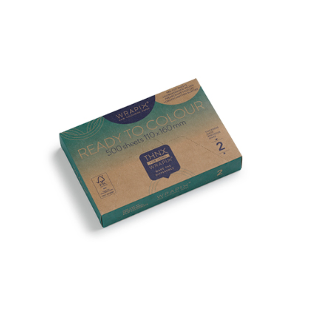 De papieren zijn lichtgewicht, voorgesneden die verkrijgbaar zijn in 3 verschillende diktes (2, 3 en 5). Hoe hoger het cijfer, hoe dikker en stijver het papier. Welke dikte je van het Wrapix papier gebruikt, hangt simpelweg af van je persoonlijke voorkeur. Per dikte kun je ook nog kiezen voor verschillende afmetingen. De lengtes kies je op basis van de haarlengte van de klant. De vellen zijn voorgesneden en de zijkanten hoeven niet omgevouwen te worden. Hierdoor kan er nog efficiënter gewerkt worden.
