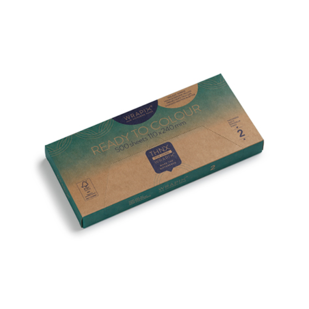 De Wrapix 2 - 500 sheet is verkrijgbaar in verschillende afmetingen: 110x160 mm of 110x240 mm. De inhoud van de Wrapix zijn 500 stuks.