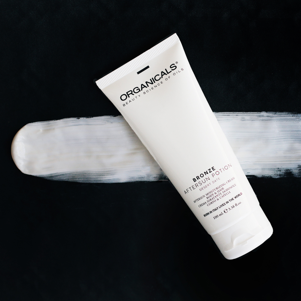 Gebruik de Organicals Bronze Aftersun Cream Hair & Body na het douchen op zowel huid als haar: