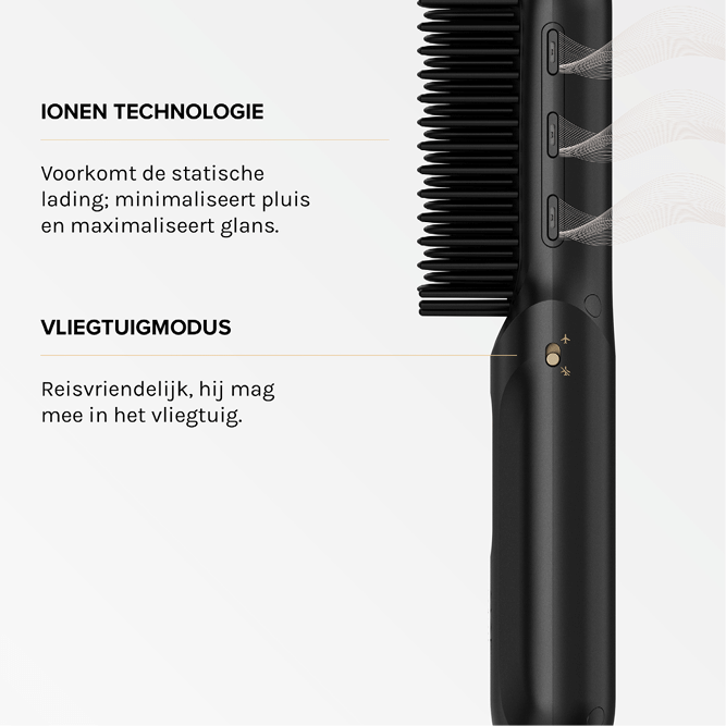 De innovatieve Touch Up is ontworpen voor maximale flexibiliteit: stijl en krul met één tool dankzij het afgeronde design, en kies uit drie warmtestanden die geschikt zijn voor ieder haartype. De keramisch gecoate borstels zorgen voor een gelijkmatige warmteverdeling, terwijl de ionentechnologie pluis voorkomt en je haar laat stralen. Extra handig: de stijlborstel fungeert ook als powerbank. Zo ben jij altijd voorbereid, van haar tot telefoon.