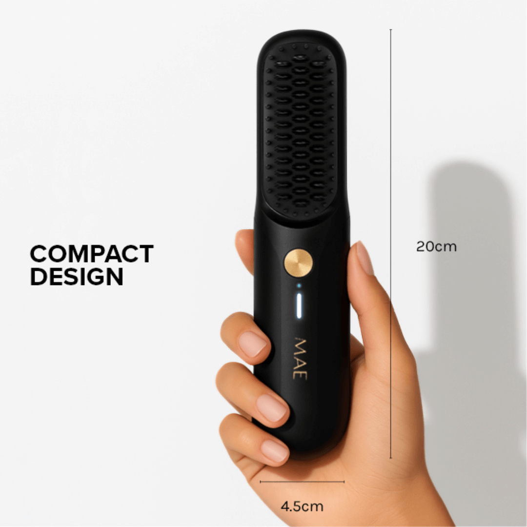 MAE Touch Up is de draadloze stijlborstel die jouw haar binnen enkele minuten weer perfect in model brengt. Onderweg naar werk, tijdens een meeting-break of op vakantie? Deze compacte, slimme tool is altijd binnen handbereik voor een snelle touch-up. Dankzij het lichte gewicht, de krachtige batterij én veelzijdige stylingmogelijkheden is dit jouw ultieme beauty essential, voor stijl, gemak en verzorging, waar je ook bent.