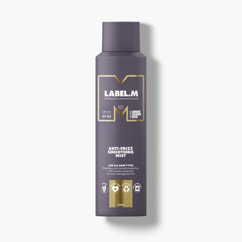 Label.M is een lichtgewicht mist waarmee het haar wordt hersteld. Deze mist zorgt voor de finishing-touch, pluishaar en fly-aways worden getemd. Het haar wordt een stuk gladder en handelbaar. De spray beschermt het haar ook tegen hitte tot 230˚C en schade van buitenaf. Deze Smoothing Mist is daardoor geweldig om te gebruiken voordat je gebruik maakt van een hittetool. Label.M Anti-Frizz Smoothing Mist is vegan.