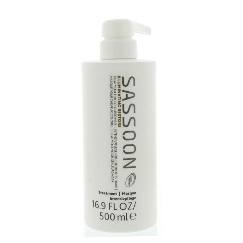 Sassoon Illuminating Restore is een intensief herstellende treatment. Het is geschikt voor gekleurd of chemisch behandeld haar. Gekleurd haar heeft extra verzorging nodig vanwege de beschadigingen door de behandeling. Dit masker van Sassoon herstelt het beschadigde haar weer volledig. Sassoon Illuminating Restore zorgt ervoor dat het haar minder snel afbreekt. De haarkleur wordt behouden en wordt voorzien van glans. Het masker kan wekelijks gebruikt worden. Het masker is vrij van SLS, sulfaten en siliconen.