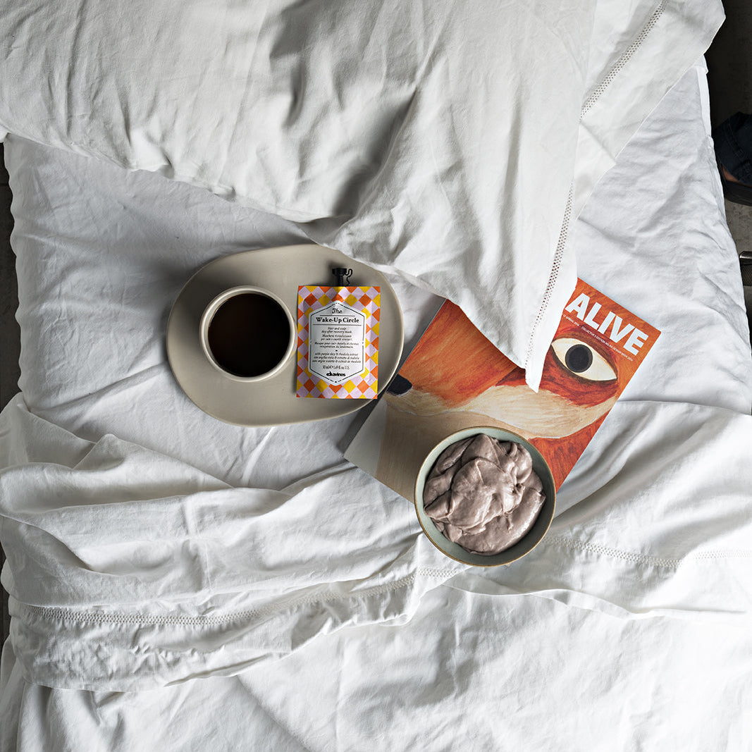 - Breng Davines The Wake-up Cirlce aan op je gewassen en handdoekdroge hoofdhuid en haar.