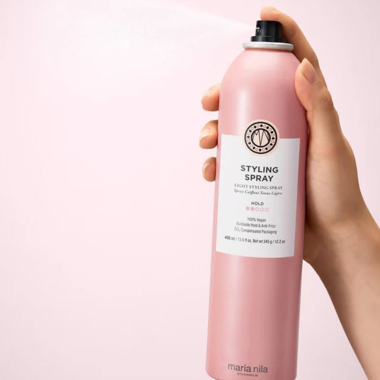 De Maria Nila Styling Spray is een spray die speciaal ontwikkeld is om het haar een stevige, mooie en aantrekkelijke finishing touch te geven. De spray helpt kroezend haar tegen te gaan en is gemakkelijk uit te borstelen. Daarnaast beschermt de haarspray het haar tegen schadelijke straling van de zon en kleurvervaging. De Maria Nila Styling Spray bestaat uit 100% plantaardige ingrediënten en is vrij van parabenen en sulfaten.