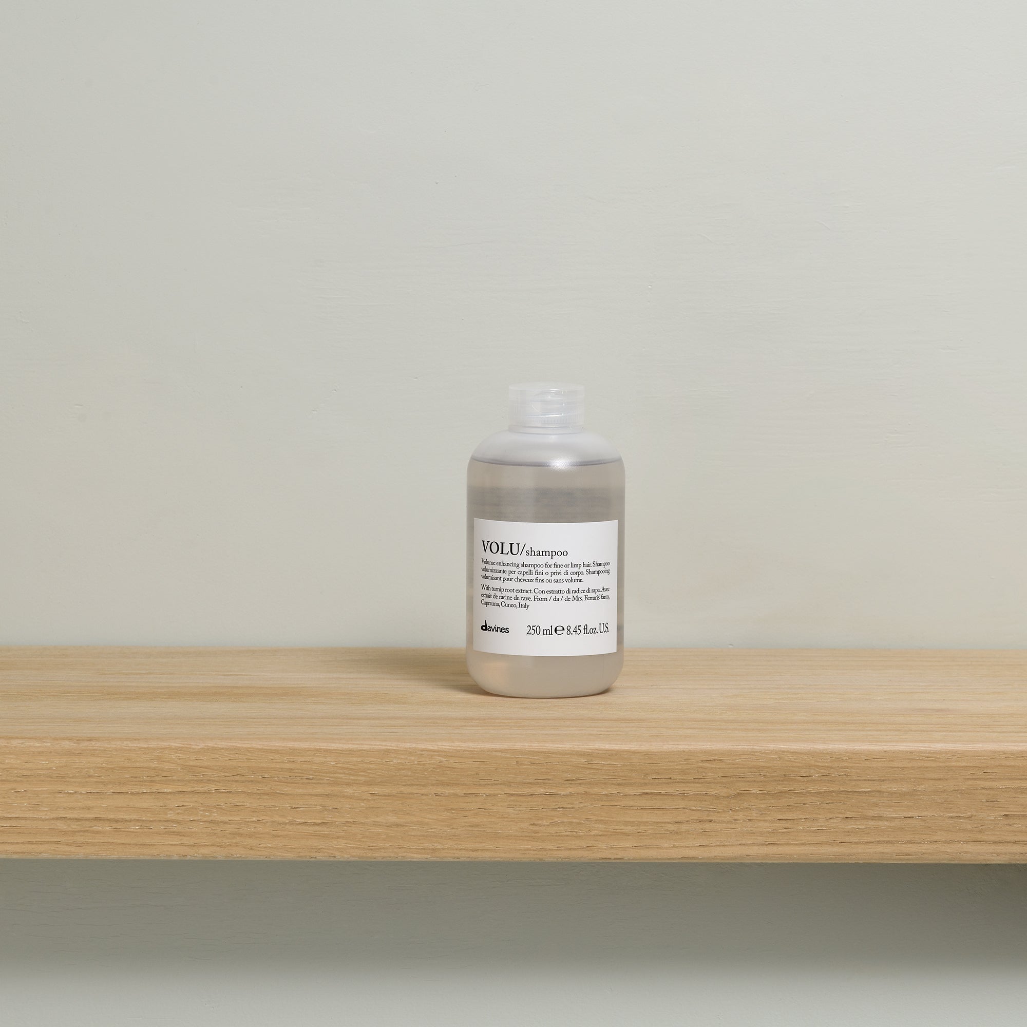 Na het gebruik van Davines VOLU Shampoo heeft het haar een blijvende boost van body en volume. Het haar krijgt een merkbare body en volume, vooral bij de wortels, zonder dat het verzwaard wordt. Fijn en futloos haar oogt voller en stralender, terwijl het een natuurlijke glans behoudt.
