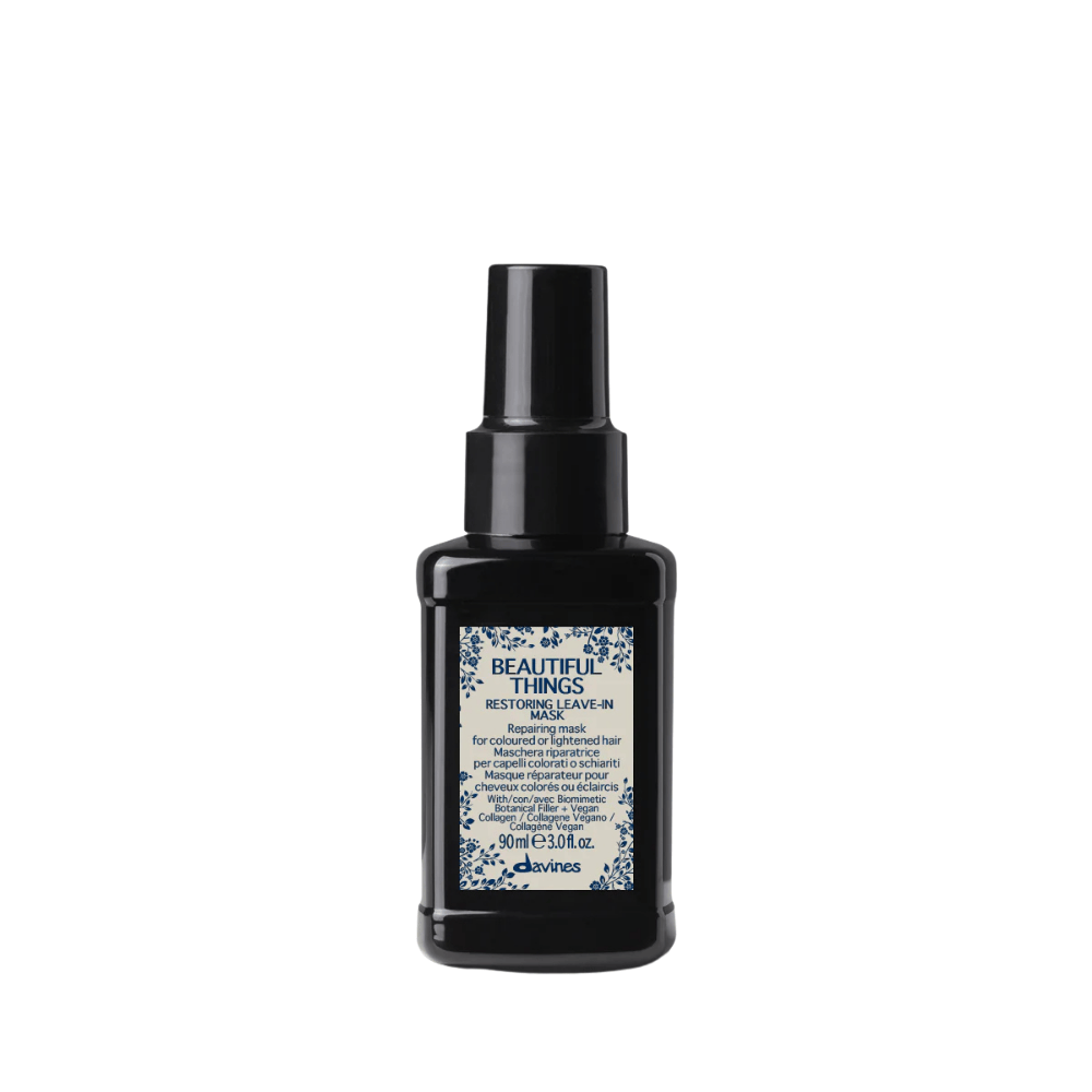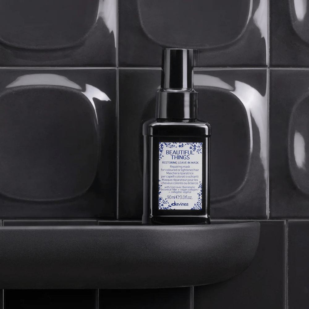 Het Davines Beautiful Things Restoring Leave-in Mask is een herstellend leave-in masker voor gekleurd of blond haar. Dit masker uit de nieuwe Beautiful Things-lijn beschermt dagelijks tegen schade en zorgt voor zachtheid, glans en langdurige kleur. Verrijkt met Biomimetic Botanical Filler en Vegan Collagen, herstelt het de haarvezel, vult het essentiële lipiden aan en biedt het bescherming tegen UV-straling, vervuiling en hitte tot 230°C/450°F. Het resultaat is zijdezacht, glanzend haar met een kleur die tot 7 weken* levendig blijft.