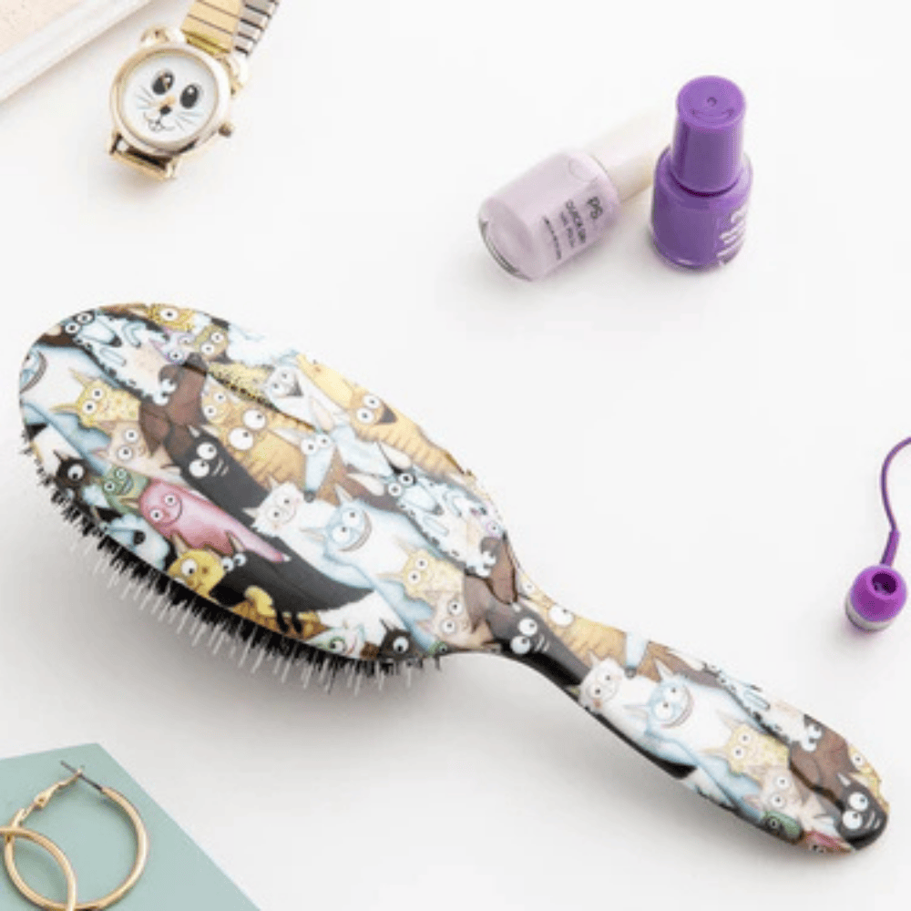 Rock & Ruddle Haarborstel Cats And Dogs is een zeer hoogwaardige kwaliteitsborstel in een groot aantal opvallende en kleurrijke designs. De haarborstels zijn gemaakt met fijne natuurlijke varkensharen. Door deze haren helpt de borstel de natuurlijke oliën, die worden geproduceerd door de hoofdhuid, te verdelen over de gehele lengte van het haar. Hierdoor krijgt het haar een prachtige, natuurlijke glans. In elke tand van de borstel zit daarnaast een nylon kern die ervoor zorgt dat klitten makkelijk verdwijnen, zelfs bij dik haar. De rubberen strip geeft net genoeg soepelheid zodat er niet aan het haar wordt getrokken tijdens het borstelen, waardoor het haar niet wordt beschadigd. De borstel is geschikt voor alle haartypes. Rock & Ruddle Haarborstel Cats And Dogs is ook verkrijgbaar in een klein formaat, zodat hij gemakkelijk is om mee te nemen.