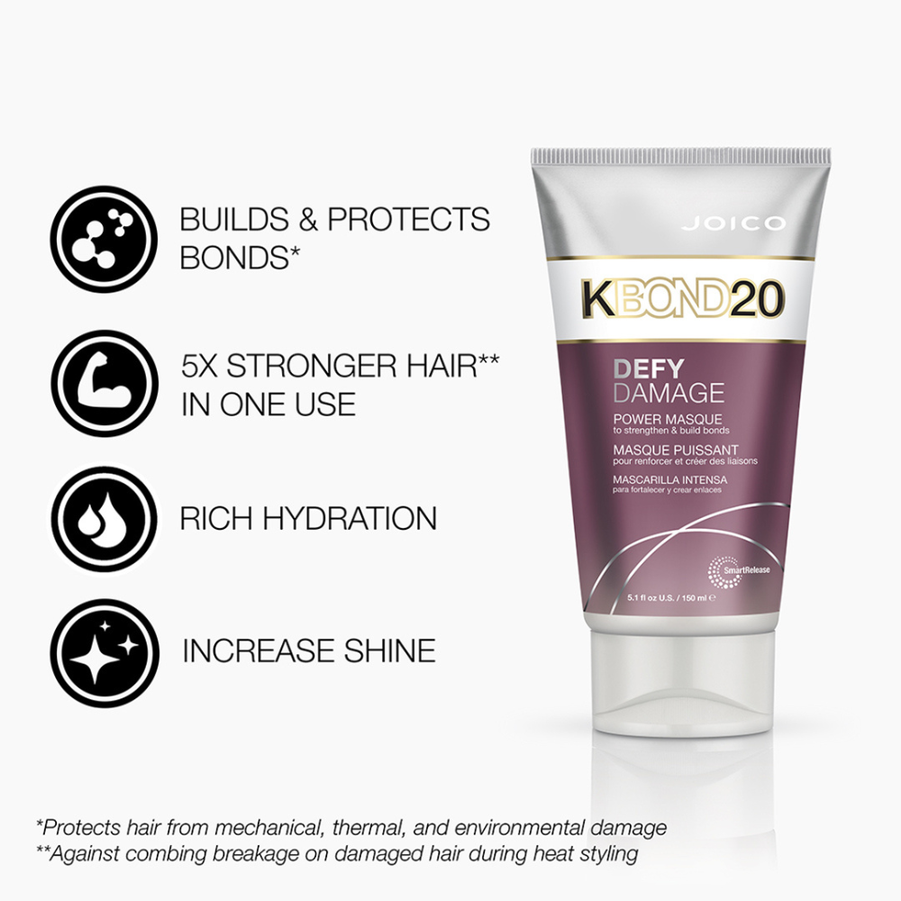 Het Joico Defy Damage KBond20 Power Masque zorgt ervoor dat je haar tot 5 keer sterker is en intensief gehydrateerd aanvoelt. Het haar krijgt meer volume wordt zacht glanzend en gemakkelijker doorkambaar. Door de K-Pak Keratine Technologie en 18 Aminozuren wordt je haar hersteld en blijven de haarkleur en haarstructuur behouden. Je zult merken dat je haar niet alleen gezonder en sterker aanvoelt maar ook mooier en levendiger is.