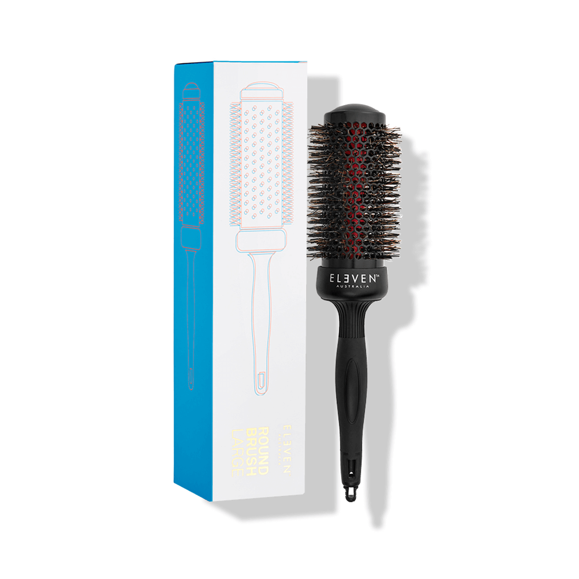 De ELEVEN Australia Large Round Brush 43mm is een geavanceerde borstel ontworpen om je föhn-ervaring te verbeteren. De binnenkant van de borstel is gemaakt van magnesium, wat de warmte beter vasthoudt en leidt, waardoor de droogtijd wordt verkort. De borstel heeft een combinatie van hoogwaardige materialen: nylonharen en cruelty-free wilde zwijnenharen. De nylonharen ontwarren het haar op een zachte manier, terwijl de wilde zwijnenharen statisch haar voorkomen, extra glans geven en het haar zijdezacht maken.