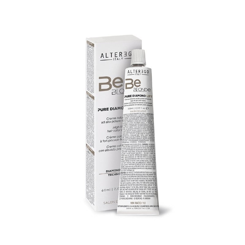 Alter Ego Pure Diamond Lift is een hi-lift permanente kleurcrème. De kleurcrème heeft een hoge concentratie aan oliën en vocht inbrengende middelen die de haarelasticiteit verbeteren. Het haar wordt gevoed en krijgt een prachtige glans. Alter Ego Pure Diamond Lift bevat Diamond Shine Technology. Dit is een uitgebalanceerde formule die helpt om de haarkleur te beschermen tegen vergeling. Daarnaast garandeert de formule maximale bescherming van het haar tijdens het hi-lift proces.