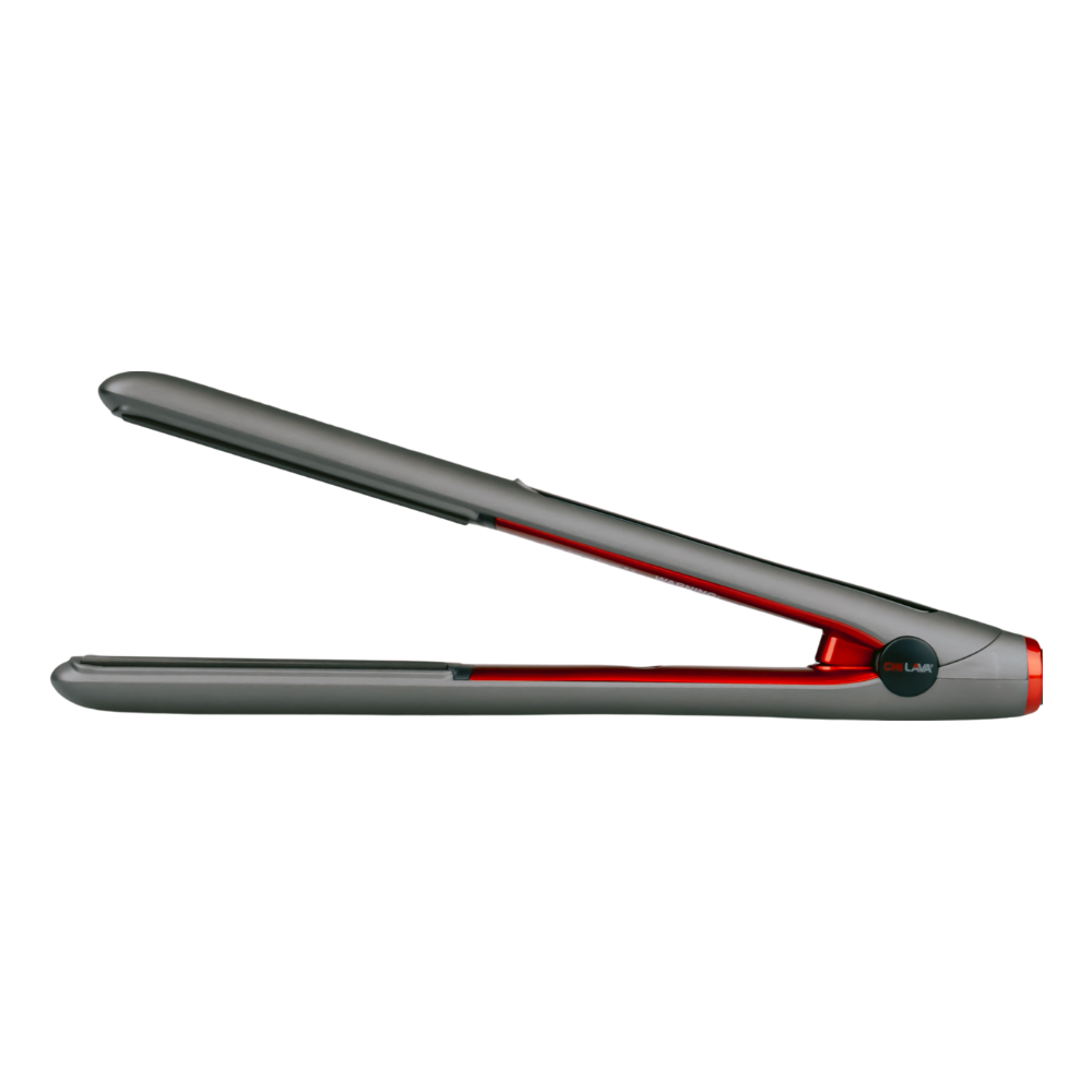 Een keramische stijltang die is voorzien van vulkanisch lava wat functioneert als de meest effectieve warmtegeleider.