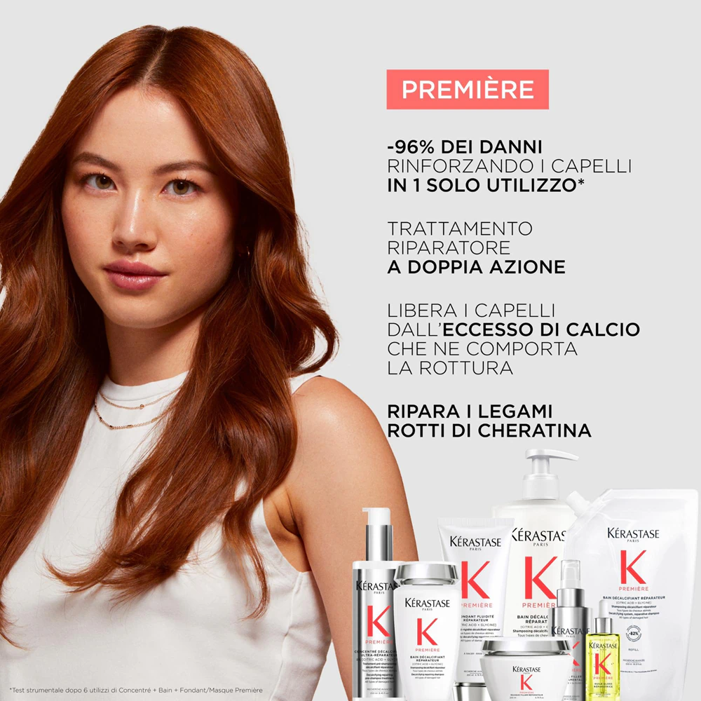 Première Concentré Décalcifiant Ultra-Réparateur (45 ml): Breng royaal aan op natte lengtes, masseer goed in en laat 5 minuten inwerken. Niet uitspoelen.